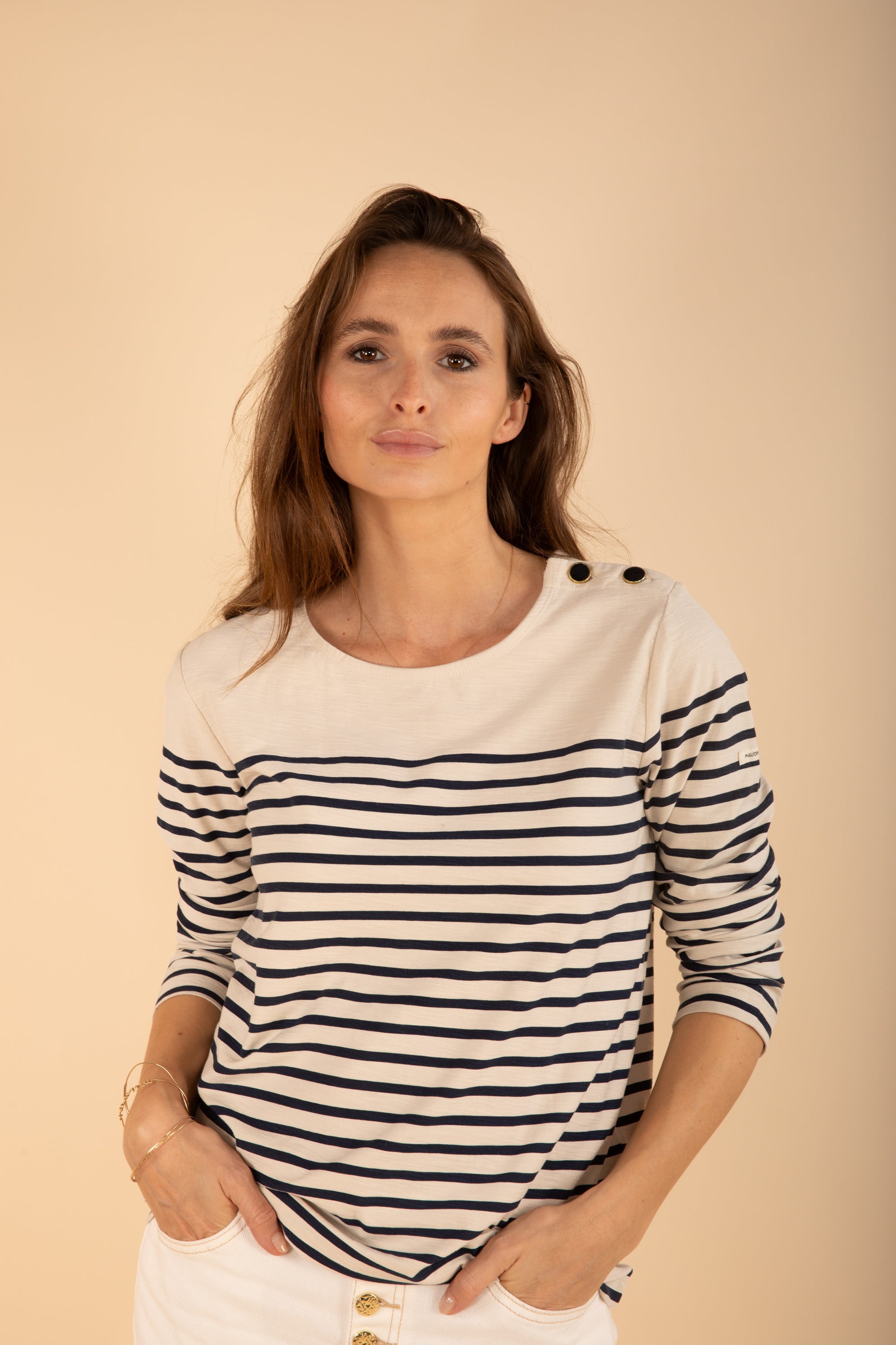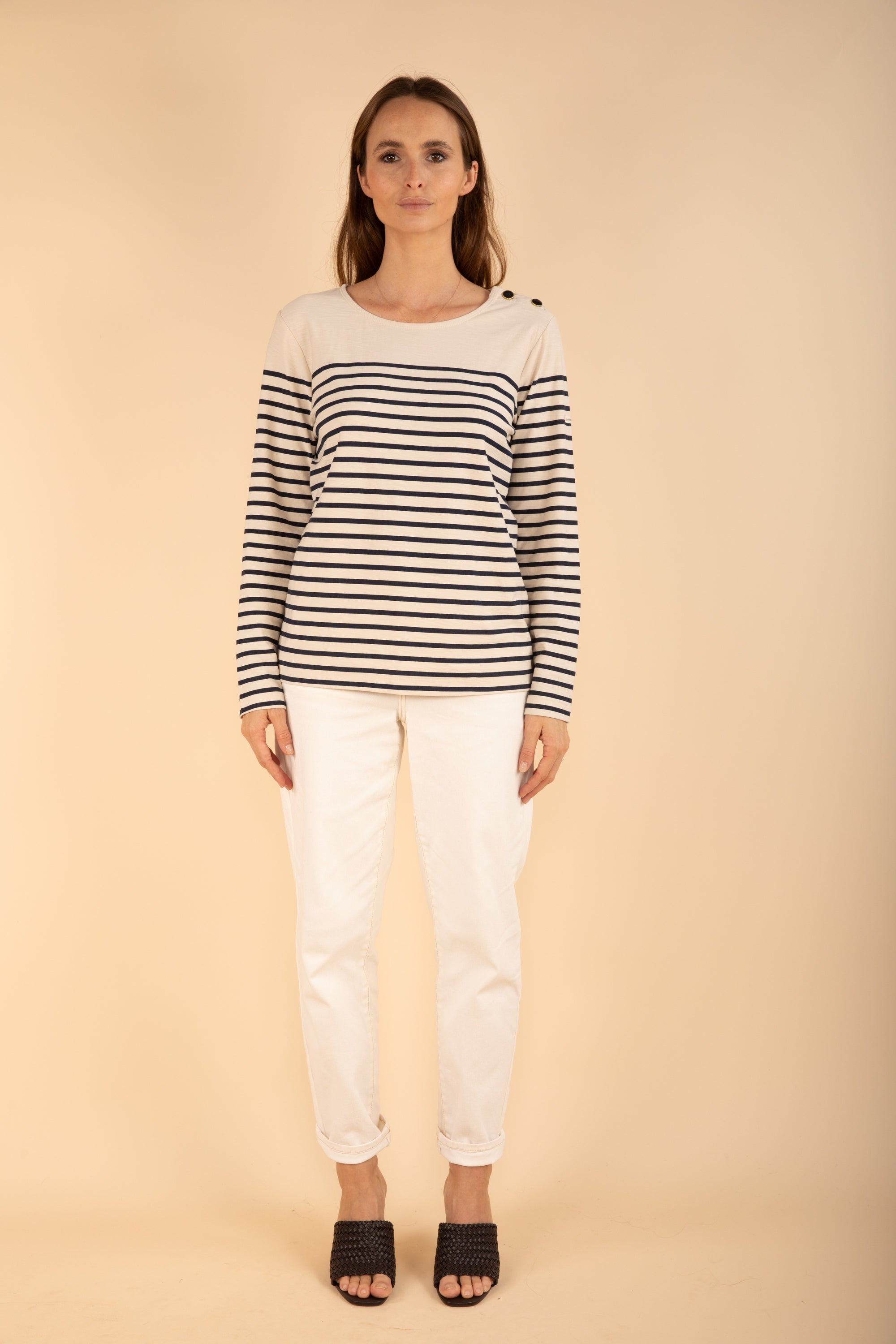 Long Sleeve Breton Shirt with Navy Stripe