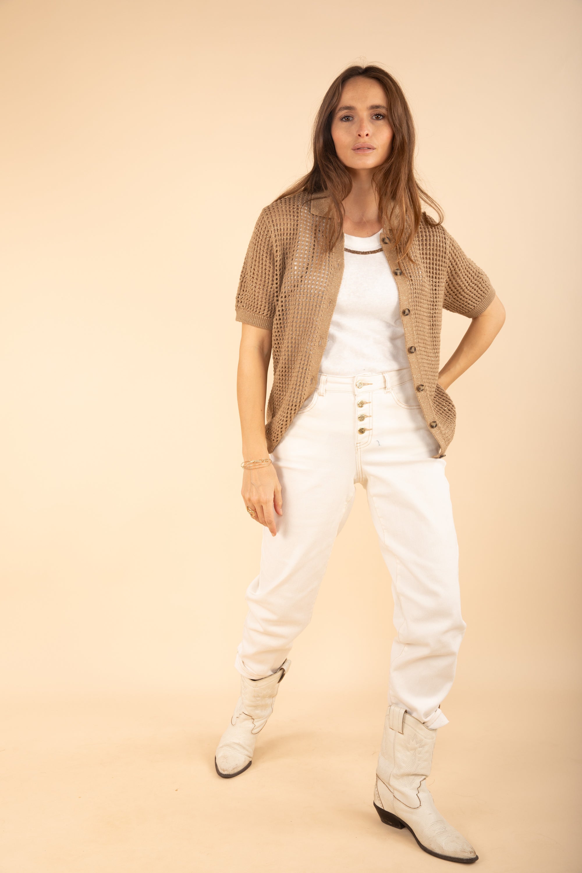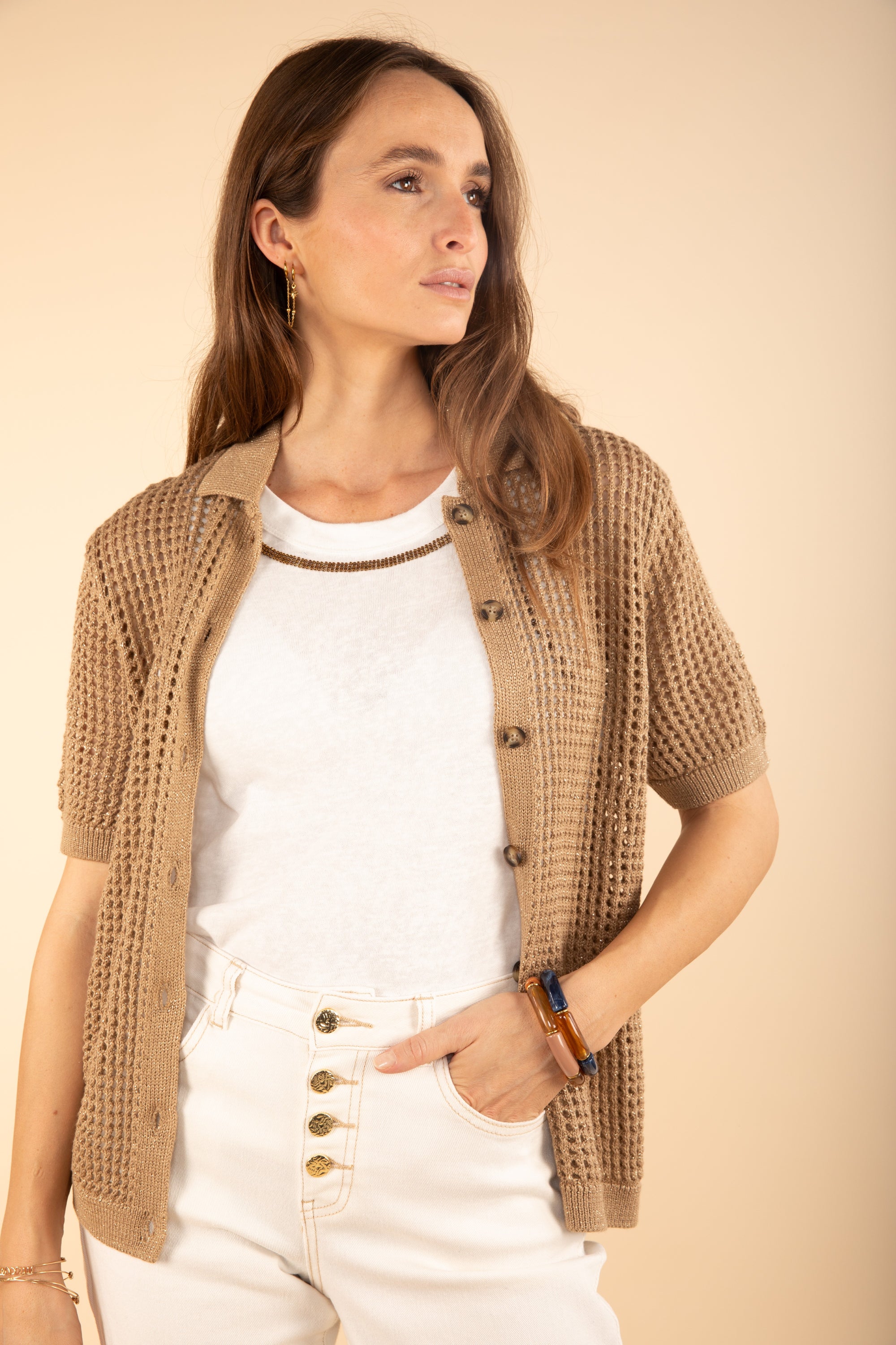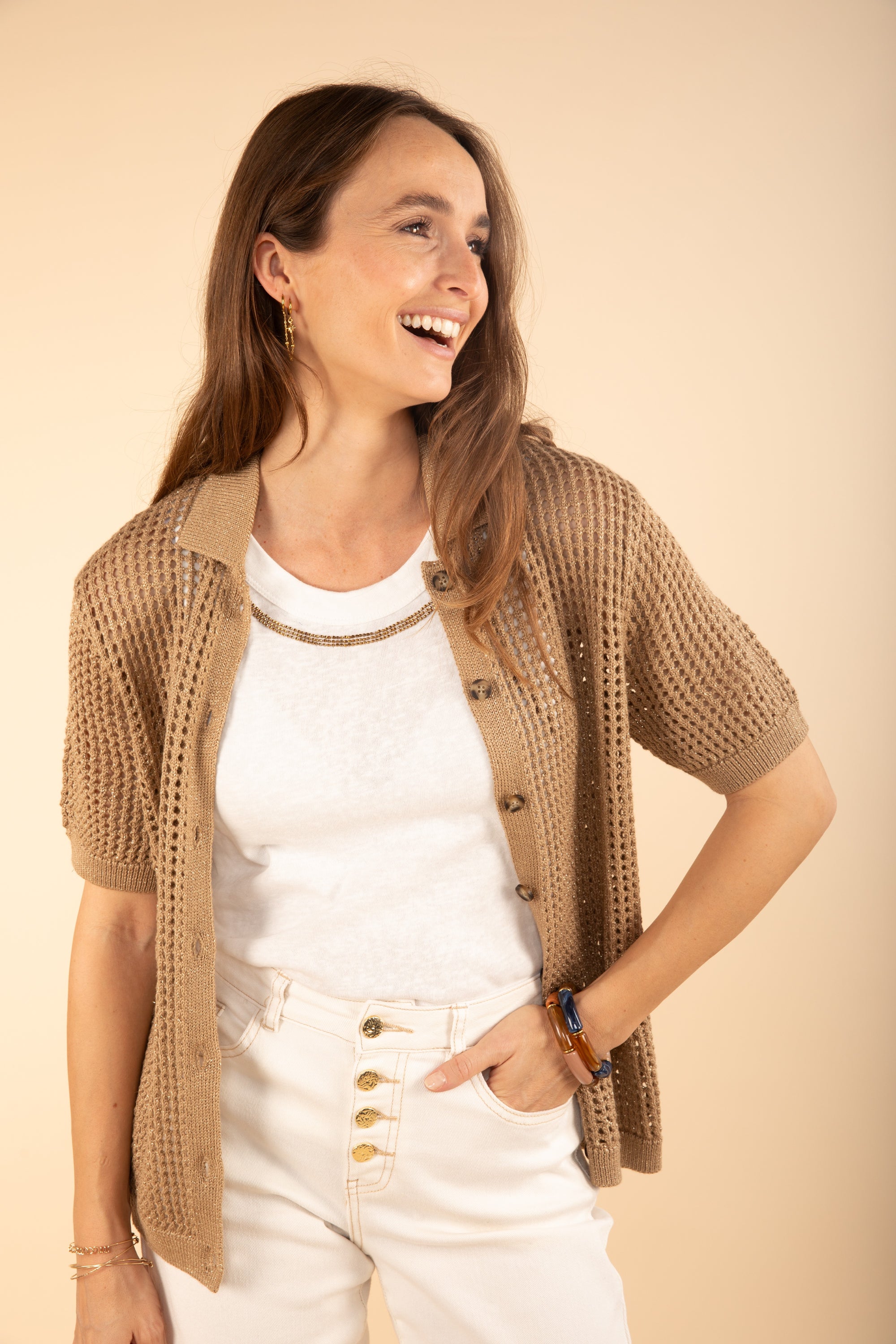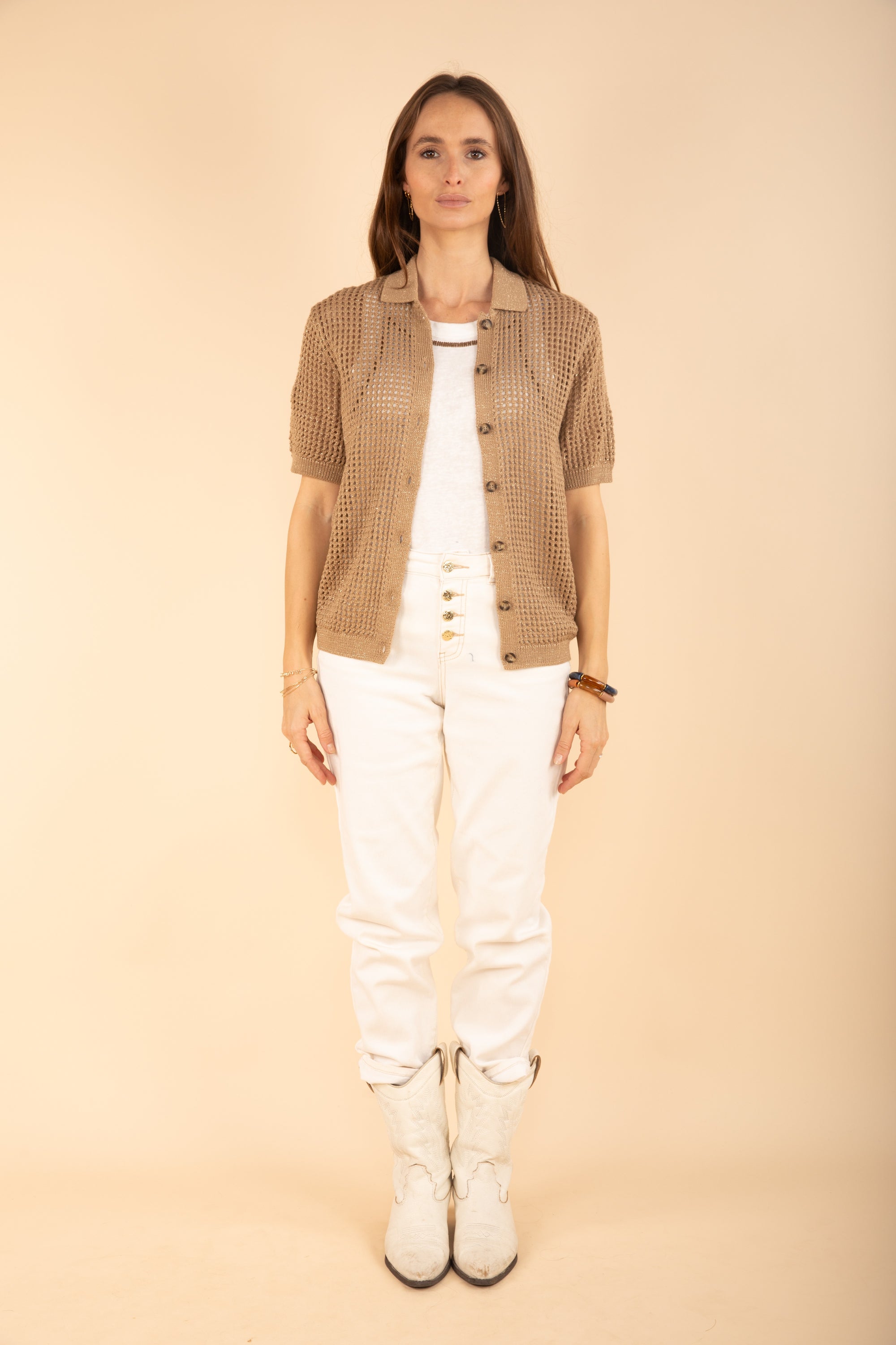 Polo Collar Shirt Knit in Caramel