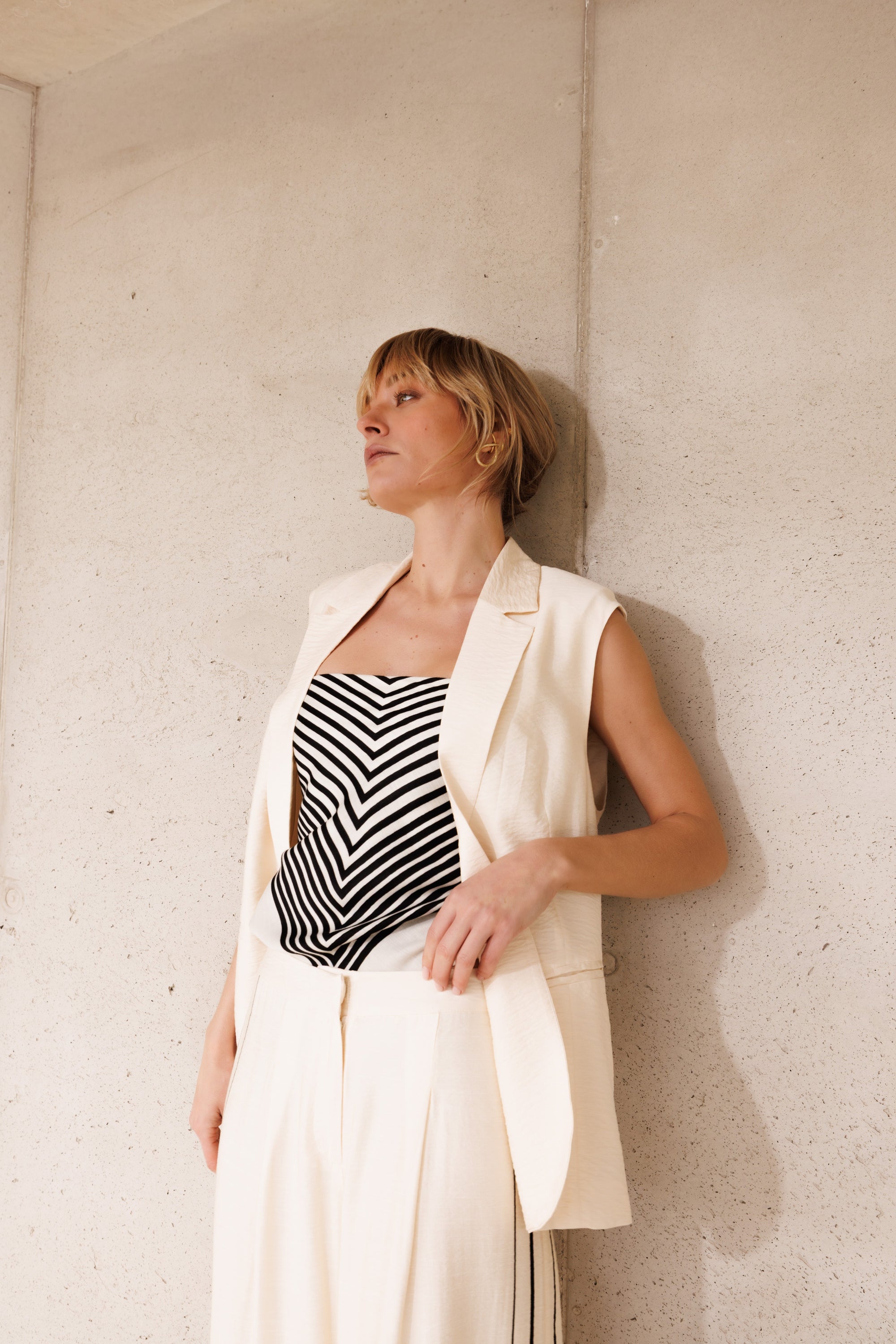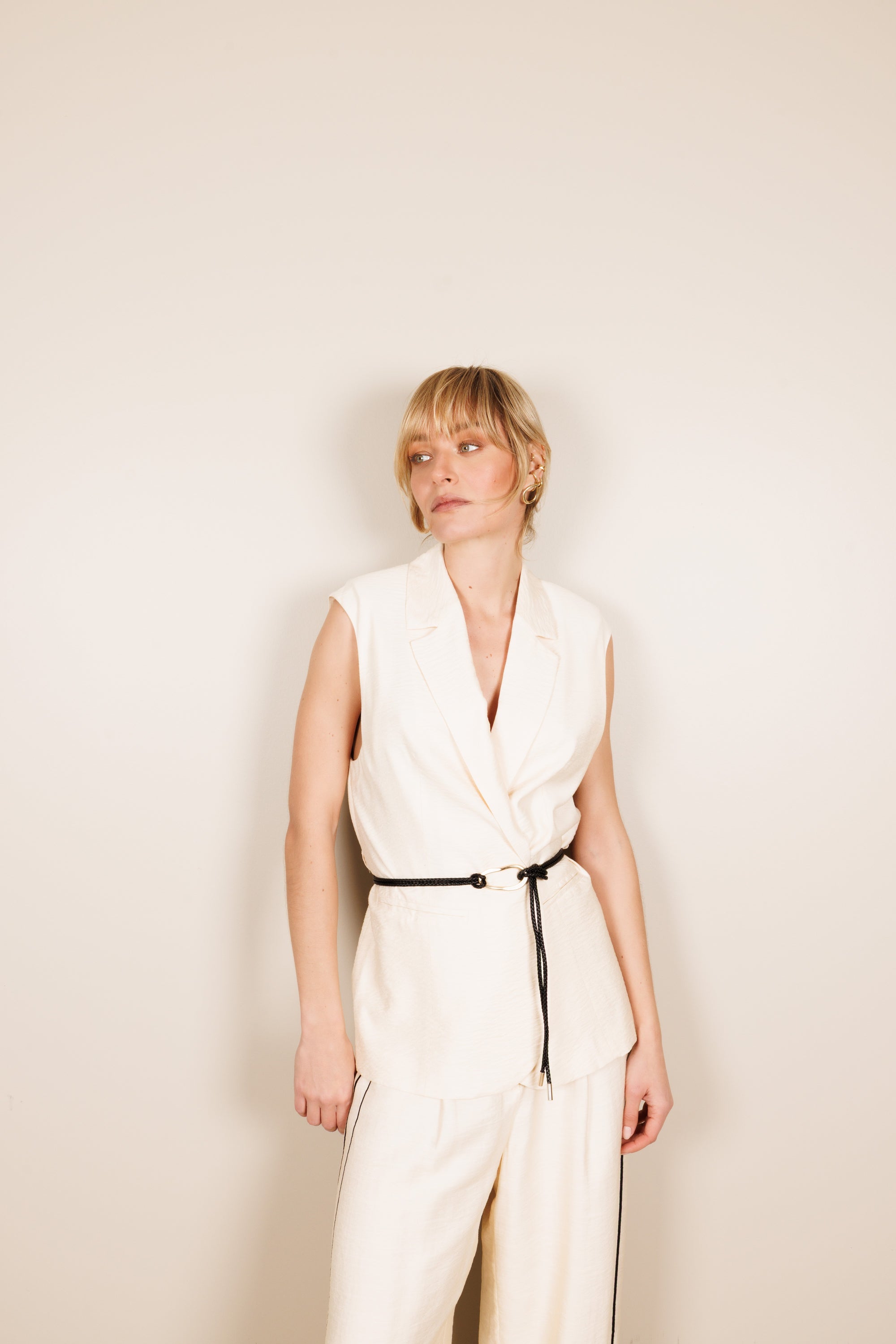 Sleeveless Blazer in Cream
