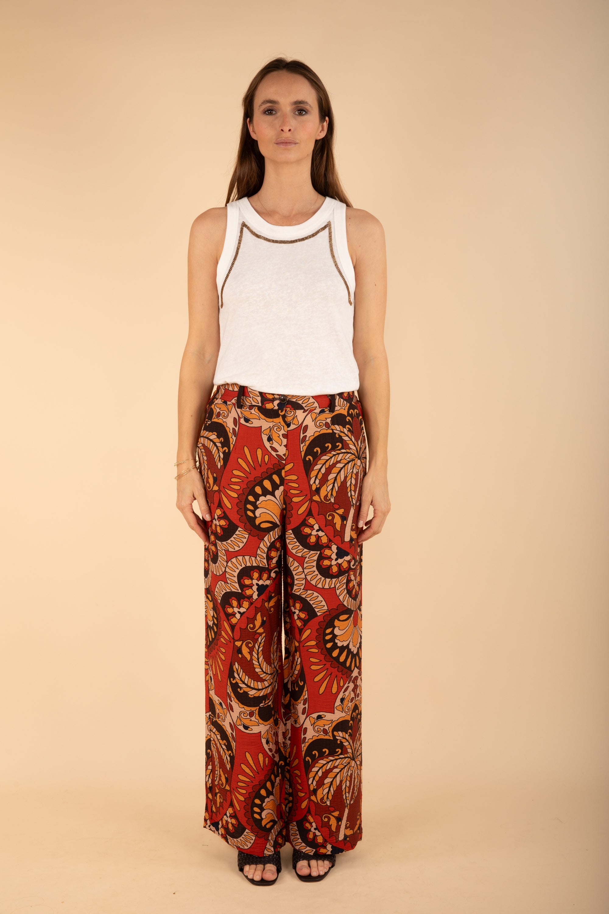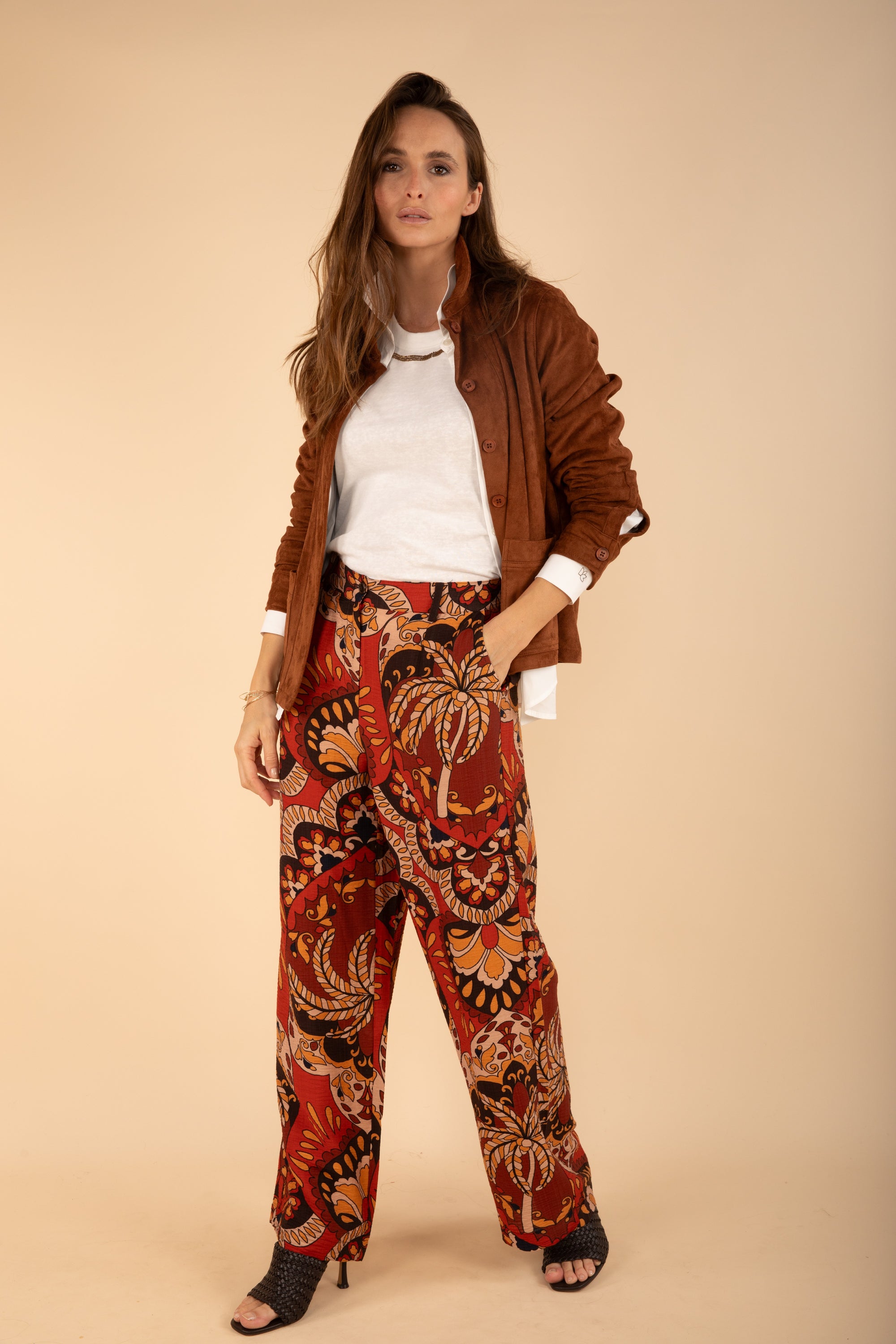 Printed Trousers in Terracotta