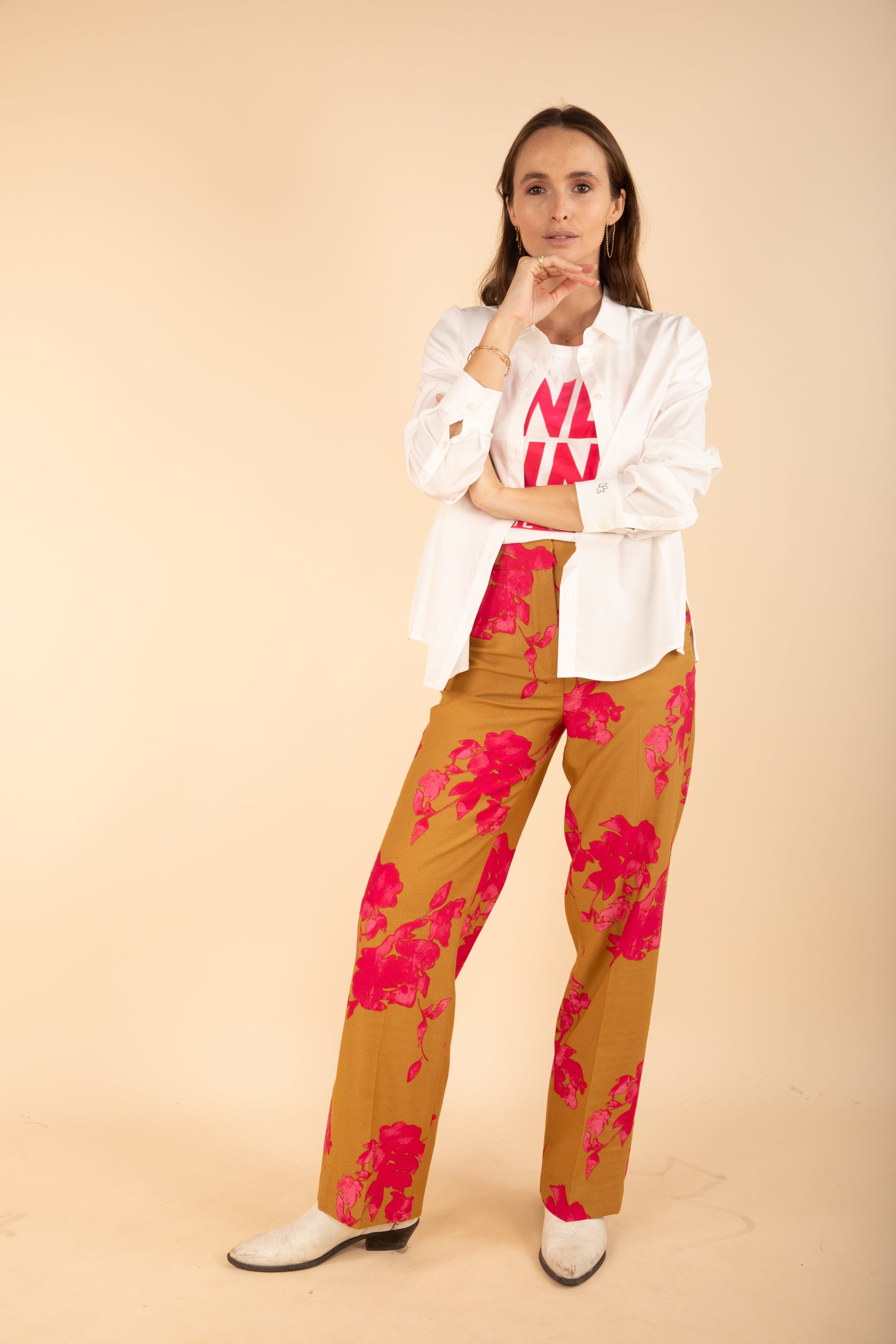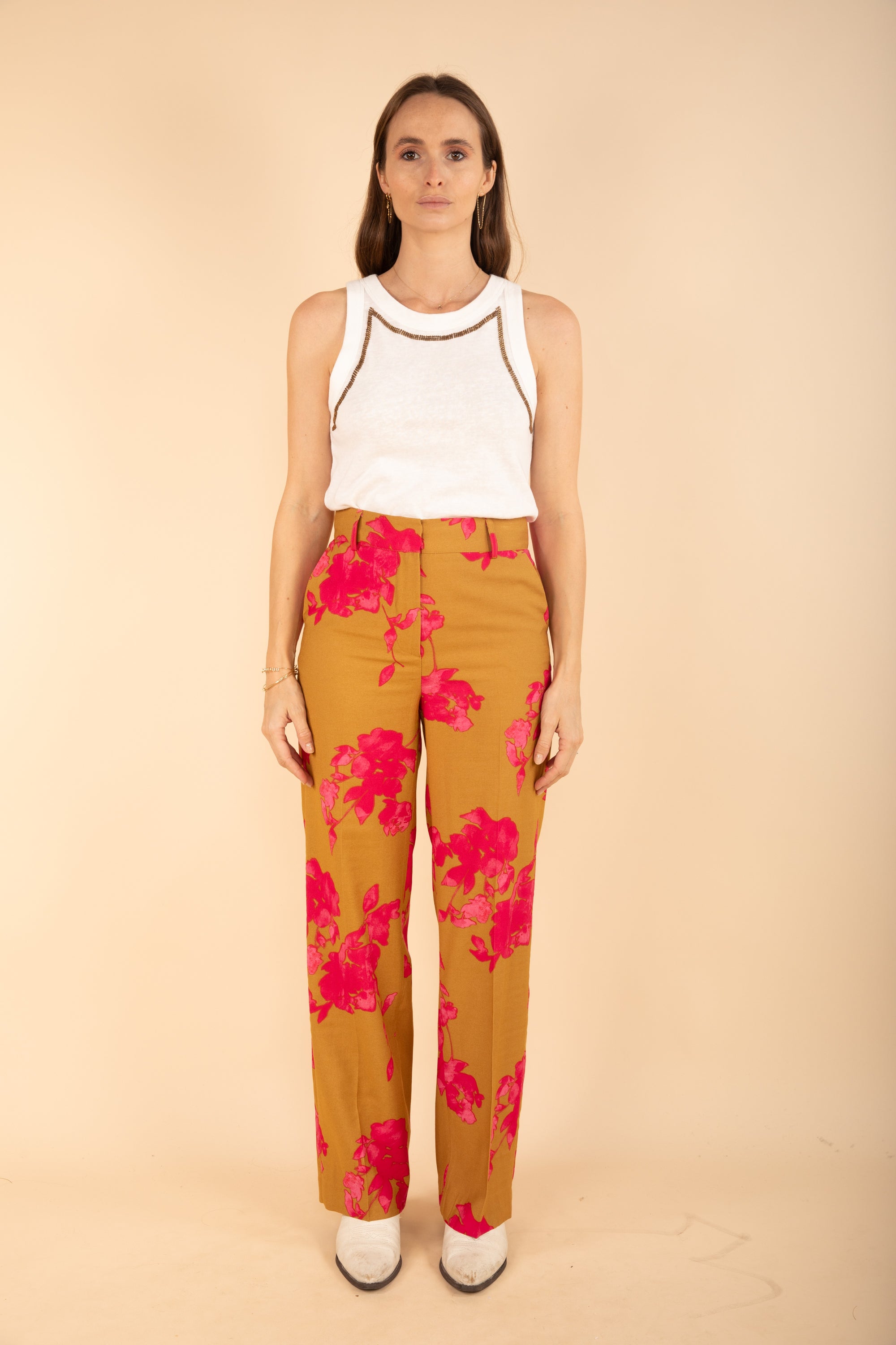 Printed Straight Trousers in Caramel