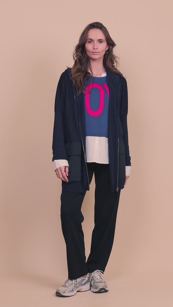 Oversized Hooded Cardigan in Navy